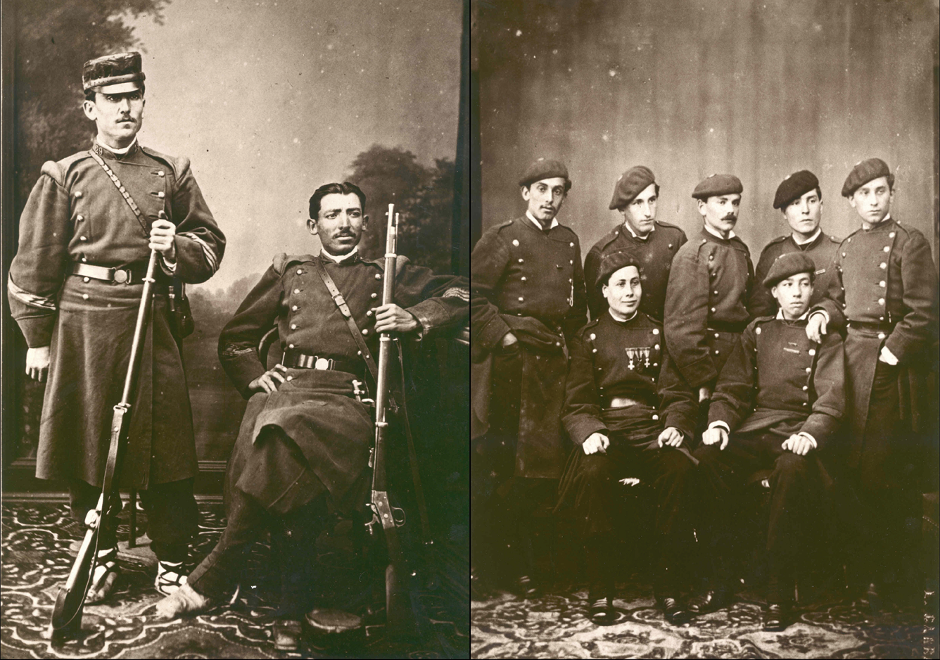 Figura 2. Soldados liberales (izquierda) y oficiales carlistas (derecha) durante la última guerra carlista
