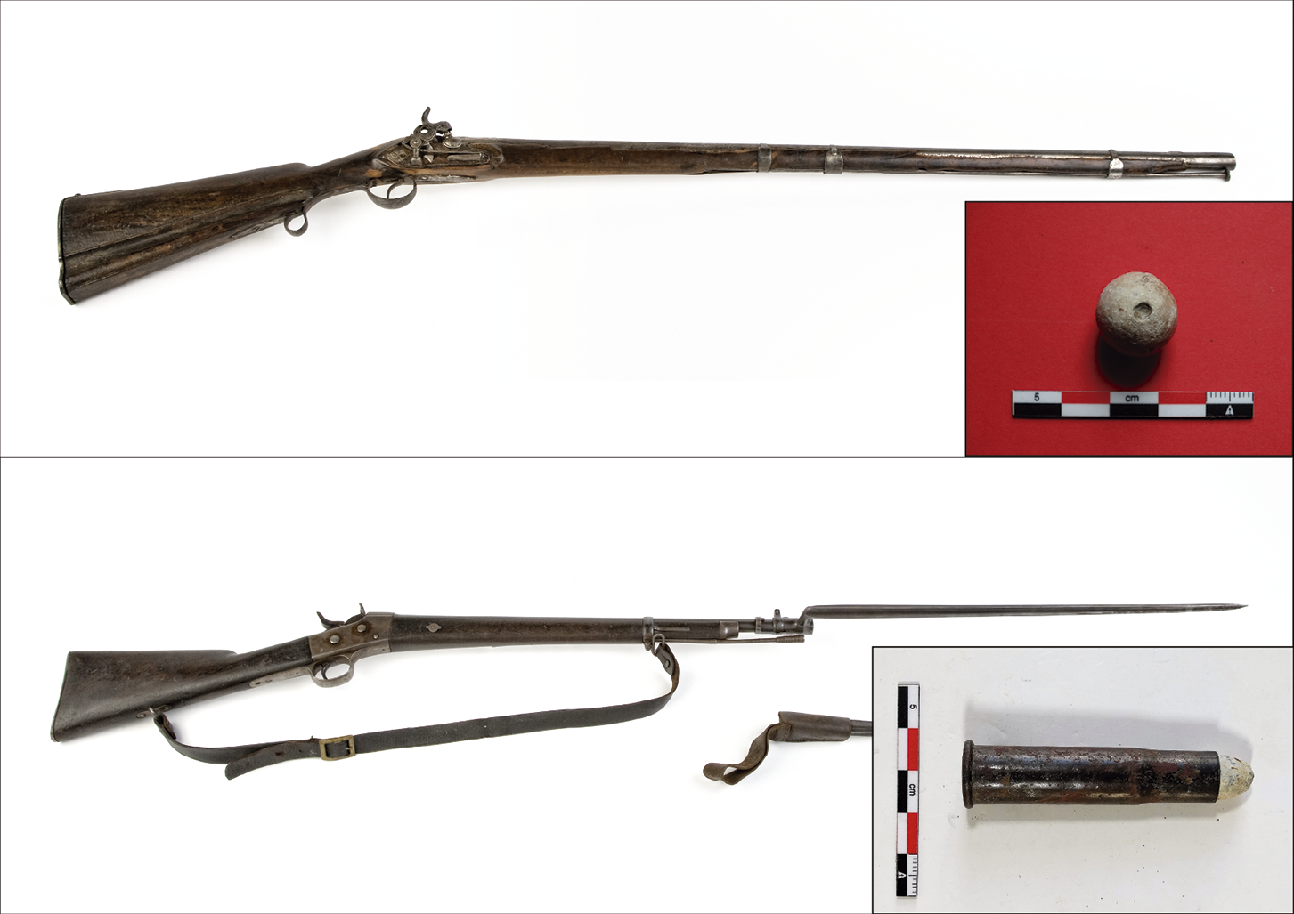 En los casos de estudio analizados se han recuperado granadas de artillería Krupp, munición 11 x 57 Remington, munición 50-70, granadas de tetones, balas rasas de artillería, granadas de envuelta ligera, balas de avancarga, tanto esféricas como ojivales o estopines de fricción. En conflictos de otras partes del mundo nos encontramos exactamente con la misma cultura material. Tales son los casos de los campos de batalla de La Verde, Tacna o Alto de la Alianza, Dolores, Yatay, Cepeda, Vuelta de Obligado, El Tonelero, Matanzas, Sand Creek o los múltiples casos de la guerra de Secesión (Escarcena, Amiliátegui y Ferreyra 2020; Geier, Scott y Babits 2014; Geier y Potter 2001; Greene y Scott 2004; Hernández de Lara et al. 2014; Landa et al. 2020; Landa et al. 2014; Leoni et al. 2020; Leoni, Martínez y Ganem 2014; Pintos 2020; Ramos et al. 2014; Zamorano 2020).