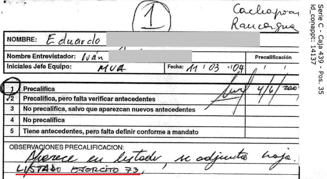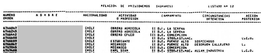 Fuente: Archivo de la Comisión sobre Prisión Política y Tortura (Valech 1), [1973] 2004, disponible en Archivo Digital de Desclasificación Popular. https://desclasificacionpopular.cl/intranet/buscadorPub.php