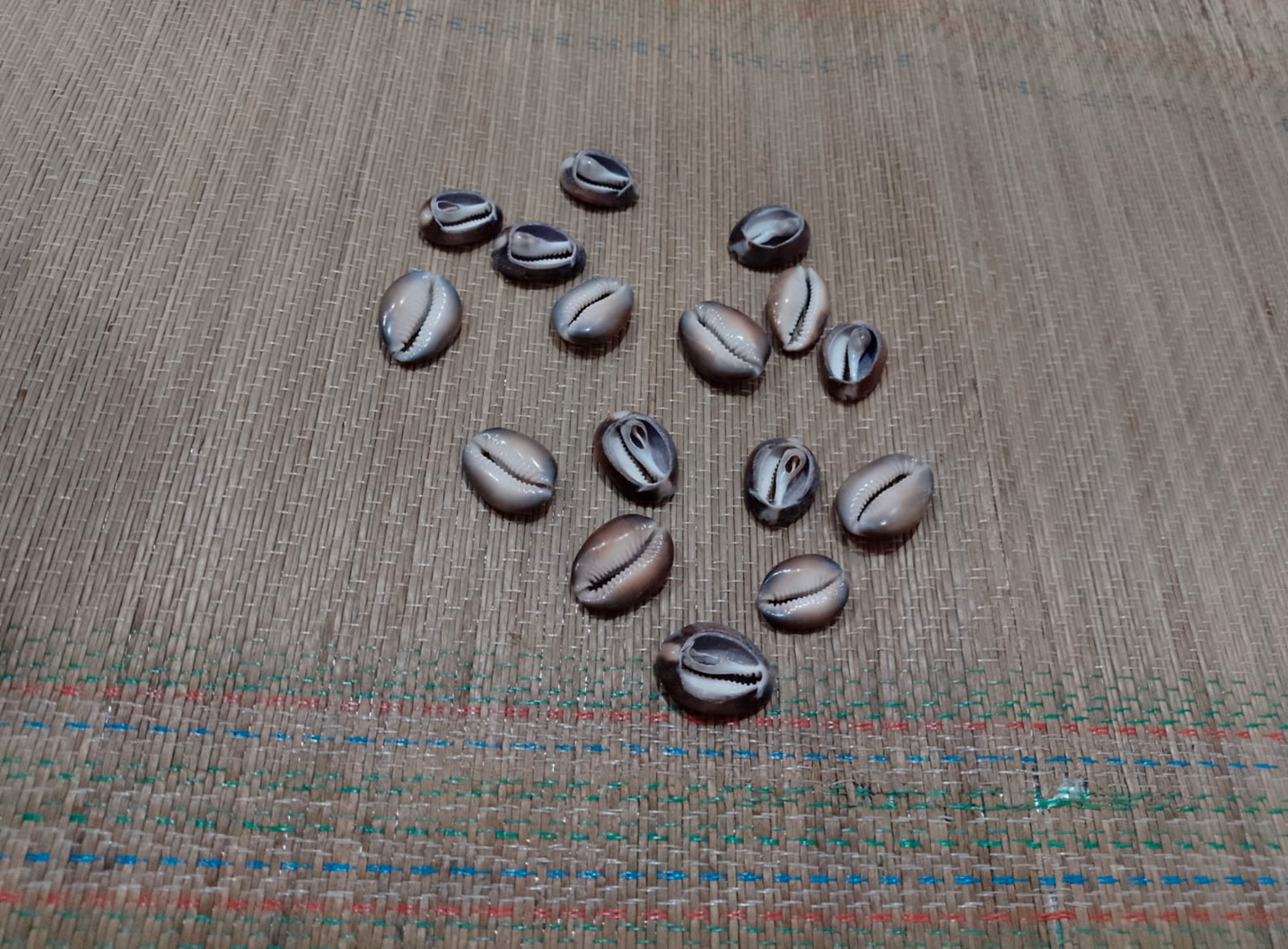 One of the central divinatory systems within the Afro-Cuban Regla de Ocha is the diloggún. This oracle consists of sixteen cowrie shells whose natural openings are understood as the mouths of the orishas. Through them, the deities reveal signs, or odu, that guide communication with human beings (Figure 1). The determination of each odu depends on how many shells fall with their openings facing upward (see Castro 2008; Lele 2003; Matibag 1996).