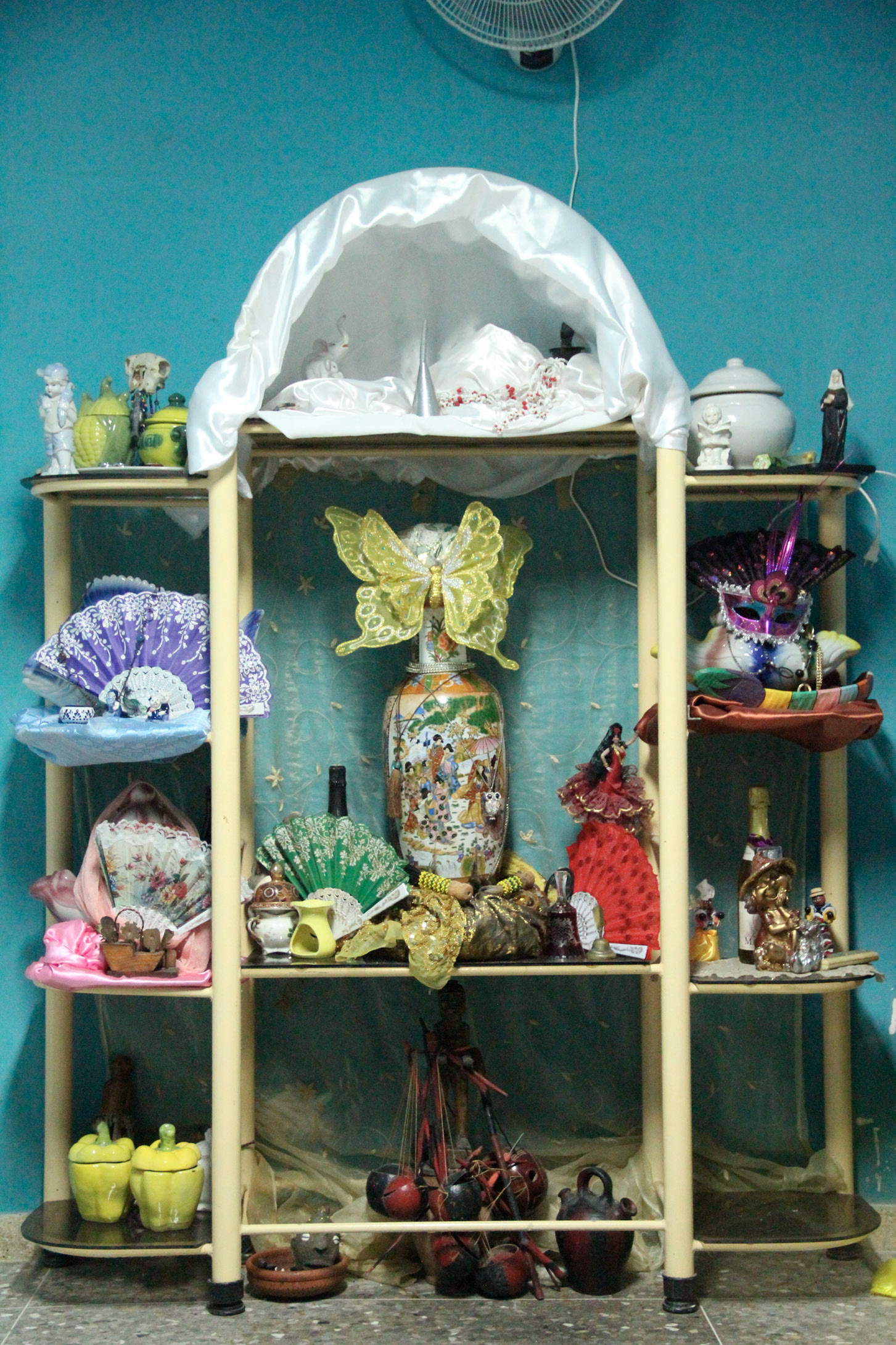 The room of the orishas (Figure 2), where the diloggún was to be cast, had already been prepared and furnished with elements that we recognized as part of the mystical world shared by those present. These objects reflected the social, individual, and spiritual relationships of the context, and conveyed a sense of trust and calm.