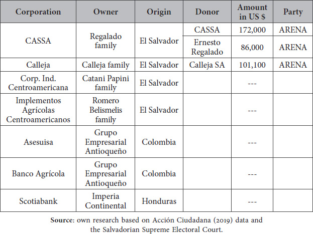 In El Salvador, although business elites were united through multi-sector business associations and a business-oriented right-wing party (Schneider 2012), three main changes suggest a drastic change in this cohesiveness during the 2000s and 2010s. First, large foreign transnational financial corporations took over major Salvadorian banks. Second, old business elites lost control over governmental institutions since the left-wing party Farabundo Marti National Liberation Front (FMLN) took power in 2009. Finally, the main right-wing governing party, ARENA, experienced a division. Dozens of leaders left ARENA and founded another party, the Great Nationalist Alliance (GANA). The 2014 presidential elections implied the possibility of the election of a former guerrilla commander, the FMNL candidate. In the perspective of Salvadoran business elites, a government led by a former guerrilla commander would involve a more radical leftist political agenda.