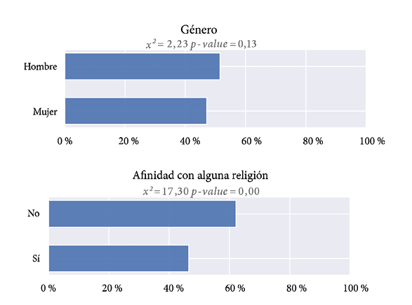 Gráfico 1. Porcentaje de personas que votarían por Petro según género y afinidad con alguna religión4