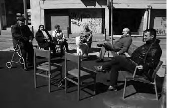 Las sillas permiten completar un espacio de reunión que el mobiliario de la plaza no construye. Fuente: equipo On Vas Navas? (Dídac Baeza, Teresa Estapé, Ivet Gasol, Kalina Miroslavova, Magalí Sanz) 2013