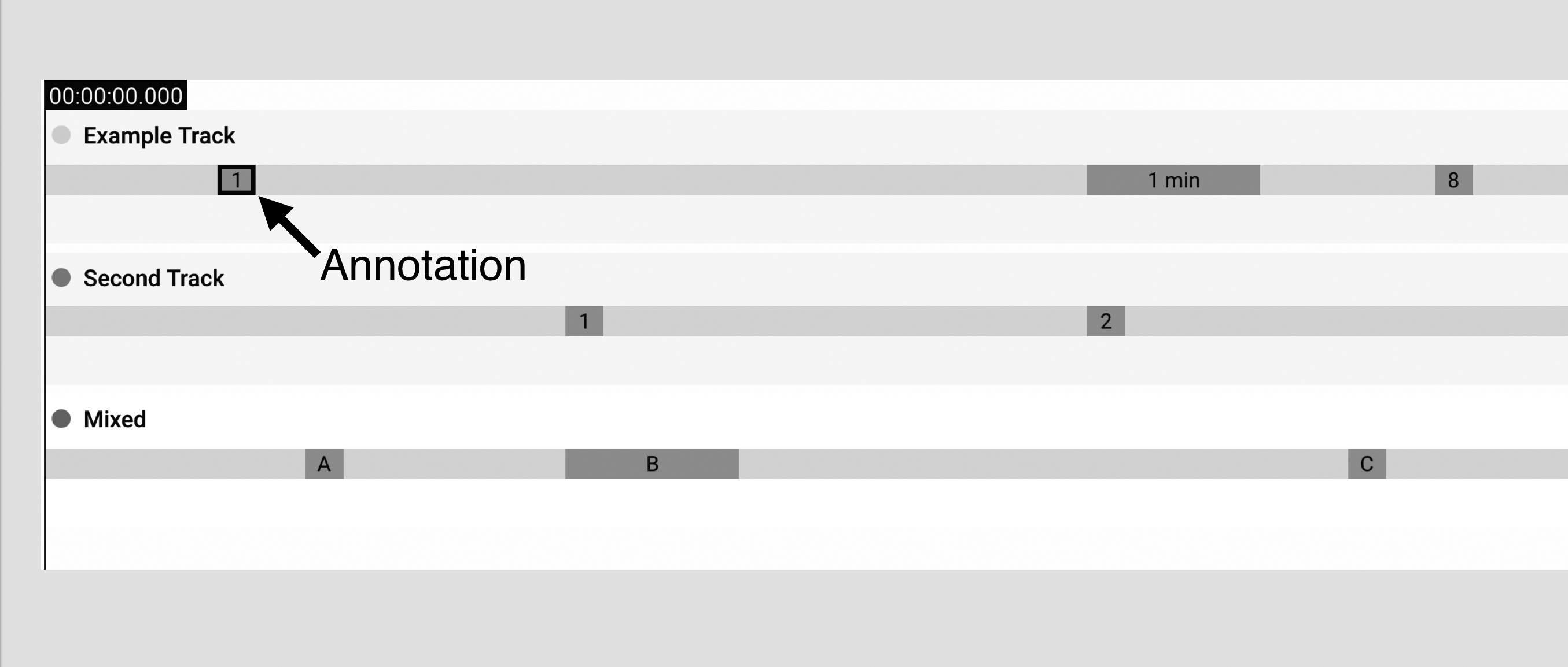 The edited video material is then enriched and enhanced in the RESEARCH VIDEO tool,4 where annotations are added to specific moments in the videos. Annotations appear on various tracks in the timeline of the video, and the tracks can be added and renamed according to the structure of the annotations (Figures 1, 2, and 3). The annotations can be texts that explain what is happening in any given situation as well as provide background information or simple keywords or tags. References and hyperlinks to other videos and other documents can also be added in the annotations.