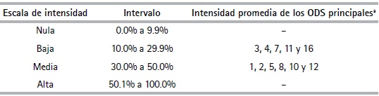 Escala de la intensidad de la interacción entre los ODS