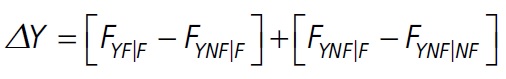 de los valores observados de las remuneraciones (Y) de personas ocupadas en el segmento formal (F ) y no formal (NF ). En este caso F (.) denota la distribución de dichas remuneraciones en uno y otro sector. Con algunas transformaciones algebraicas, esta diferencia puede ser escrita de la manera siguiente: