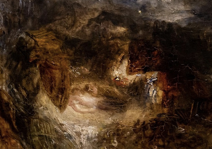 Imagen 5. Detalle de Light and Colour donde se ve el Ararat y las caras humanas arrastradas por las pinceladas que aluden al vestigio del diluvio.