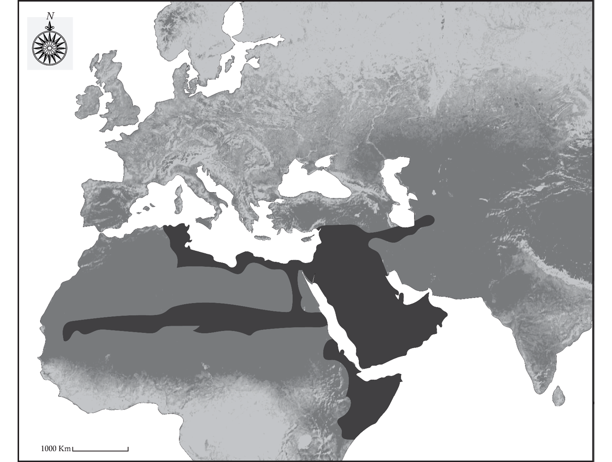 El norte de África tiene una historia diferente. Creo que en la Tunisia y la Tripolitania romanas se desarrolló el pastoreo de camellos cuando la economía romana colapsó en el siglo iii, y los trabajadores agrícolas locales trasladaron los camellos, que usaban para arar y tirar de sus carros –actividades poco habituales para los camellos en aquella época— al norte del Sáhara del que terminaron por apoderarse. Cuando los ejércitos árabes llegaron a este Sahara occidental a principios del siglo viii, se encontraron con poblaciones nómadas que terminaron por arabizar. Sin embargo, desde el punto de vista económico, se trató más bien de la unión de dos zonas diferentes de cría de camellos: el “Oriente Medio” y el norte de África. Más tarde se encontró una tercera zona en el sur del Sáhara, que se adaptó fácilmente a la economía caravanera del norte. Egipto se adaptó con mayor dificultad al cambio del transporte marítimo y fluvial al de caravanas y, a diferencia de Sudán, no se convirtió en una región importante de cría de camellos. Los pastores que movilizaban rebaños de camellos de dos jorobas ofrecieron una característica adicional al comercio de caravanas de camellos desde Asia Central hasta el noroeste de China.