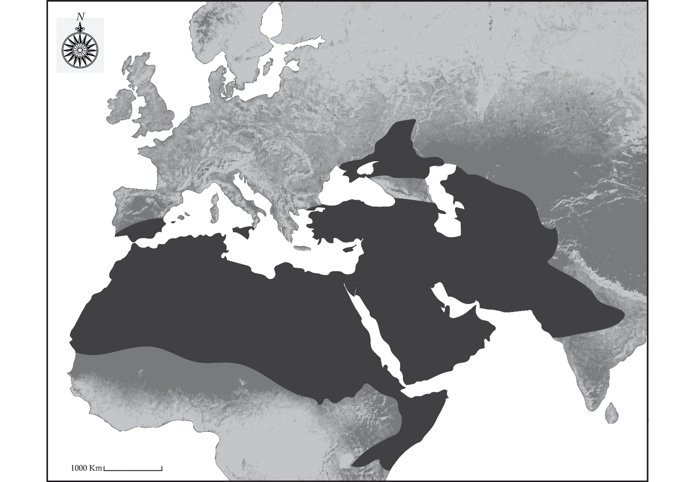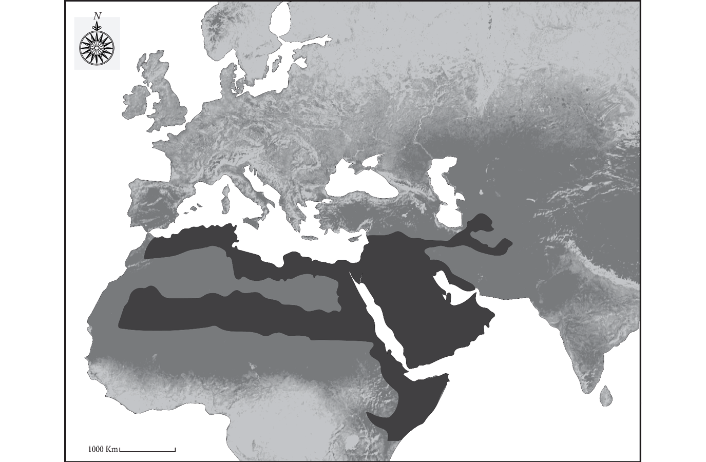 Entre el 300 a.C. y el 1300 d.C., la extensión del área dedicada al pastoreo de camellos entre oriente y occidente aumentó de unas 1.300 millas a 6.000 millas (Mapa 1).