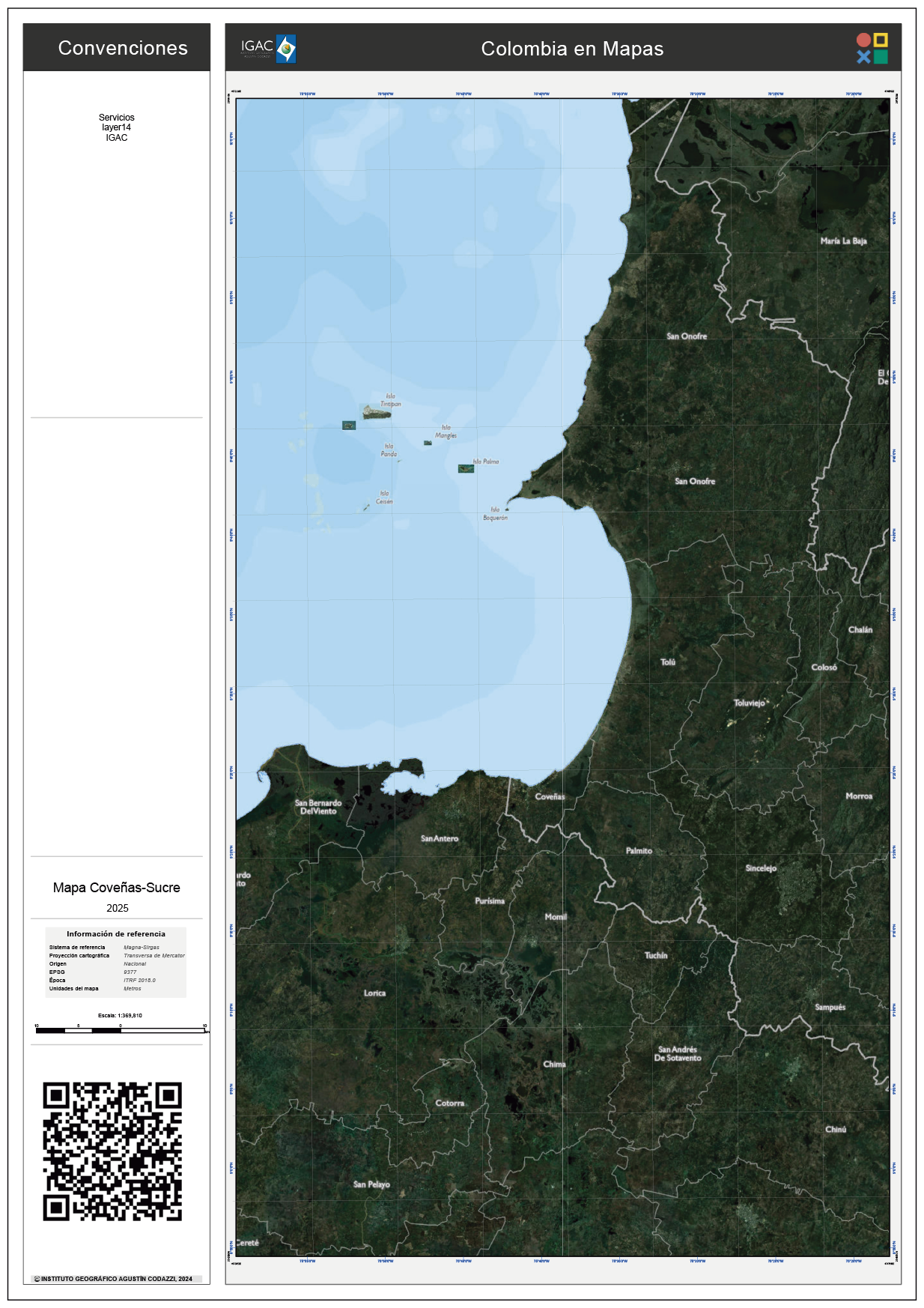 Figura 1. Mapa municipio de Coveñas, departamento de Sucre, Colombia. Fuente: Elaborado con datos de acceso libre del Instituto Geográfico Agustín Codazzi (2025).