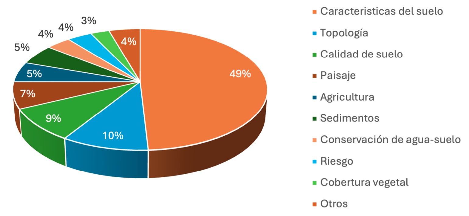 La categoría de suelo está conformada por las subcategorías: características del suelo (49 %), topología (10 %) y calidad de suelo (9 %) (Figura 9).