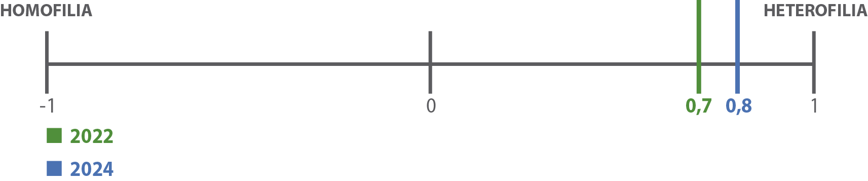 Figura 1. Comparativo de la diversidad de relaciones (E-I Index) para los años 2022 y 2024. Fuente: elaboración propia mediante el uso del programa Ilustrator®.