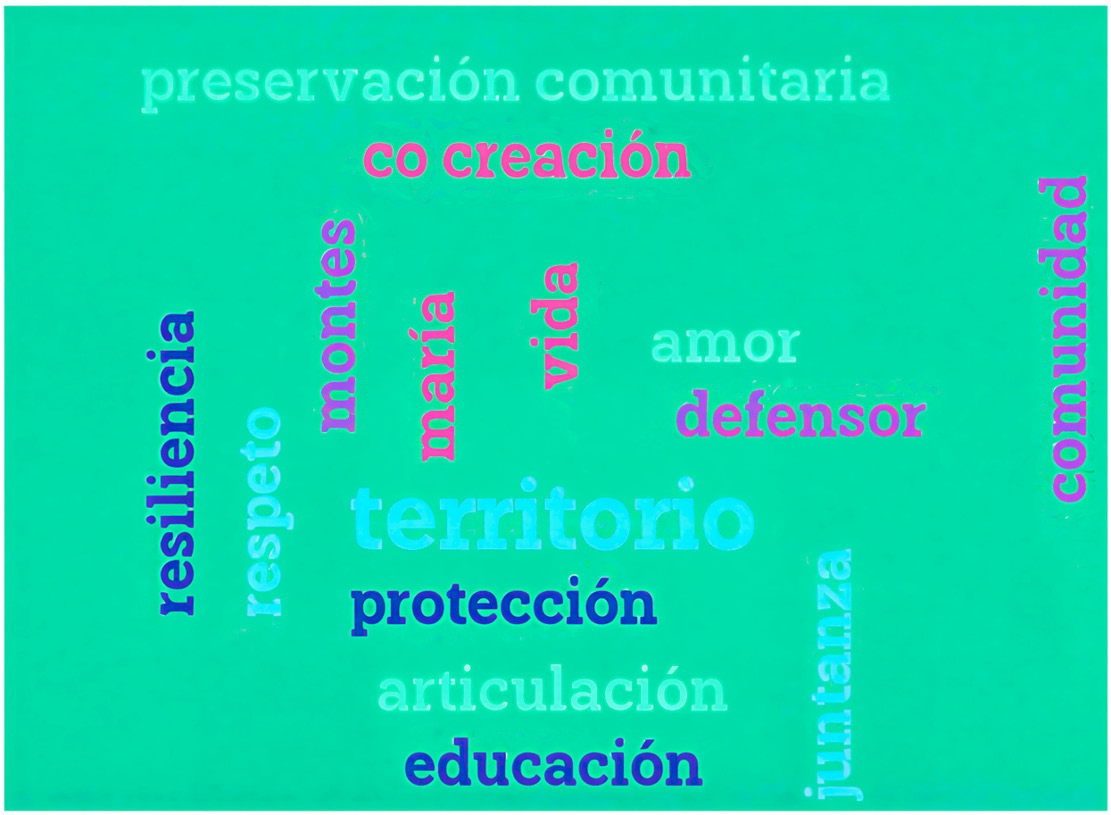 A partir de las indicaciones dadas para la lectura de la nube de palabras, se propició una conversación en la que los integrantes dialogaron en torno a las respuestas presentadas12. El intercambio permitió reconocer el contexto de las palabras mencionadas y orientó el ejercicio hacia la construcción conjunta de categorías analíticas. Con base en la identificación de estos aspectos y mediante un ejercicio de triangulación con la información bibliográfica, se describen a continuación tres categorías que permiten una aproximación situada a las apuestas para el abordaje de la participación social en iniciativas de restauración ecológica.