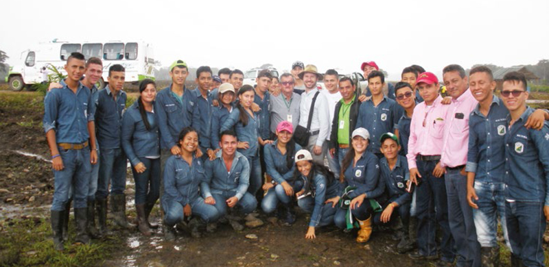 Como ejemplo de lo amables y estrechas que son las relaciones de la empresa con la comunidad, en la Figura 6 se muestra una fotografía de los ingenieros Santacruz y Rosero con un grupo de estudiantes del bachillerato técnico del SENA.