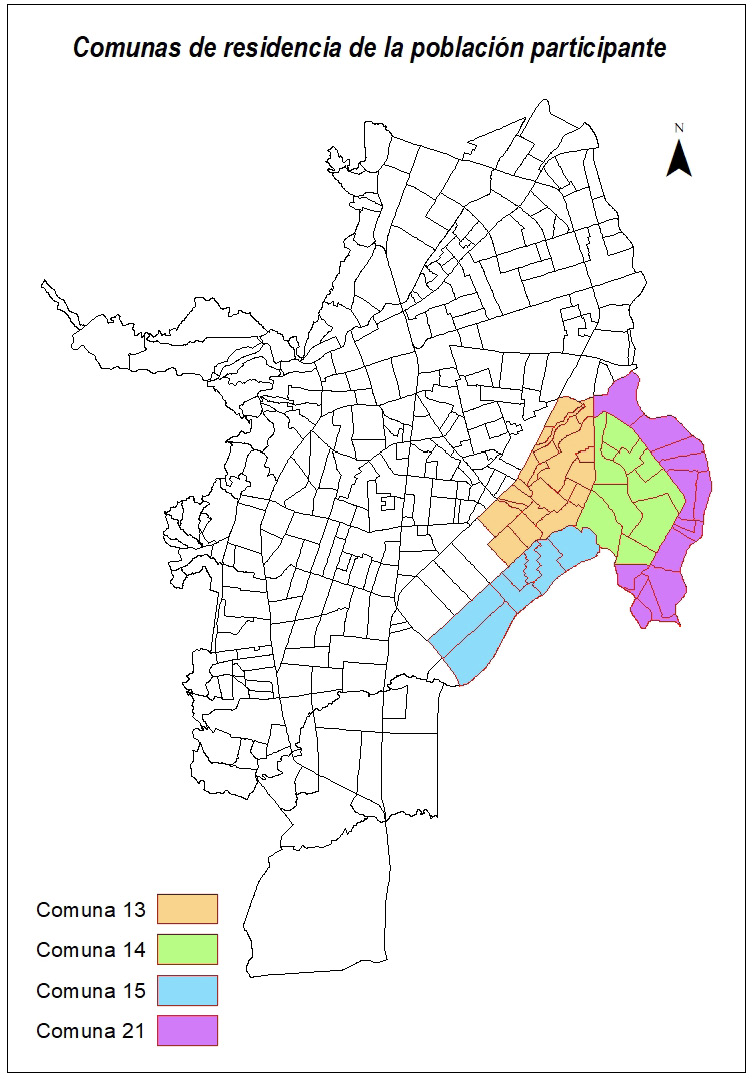 Los miembros de la fundación llegaron a Cali en diferentes periodos de tiempo (décadas de 1970 y del 2000, y año 2024) y se asentaron en el oriente de la ciudad, específicamente en los barrios El Vallado, El Retiro, Antonio Nariño, Mojica, Comuneros, Manuela Beltrán y Llano Verde (mapa 1). La mayoría de estos barrios hacen parte de la comuna 15, sector que enfrenta graves problemas de violencia con altas tasas de homicidio y pobreza.