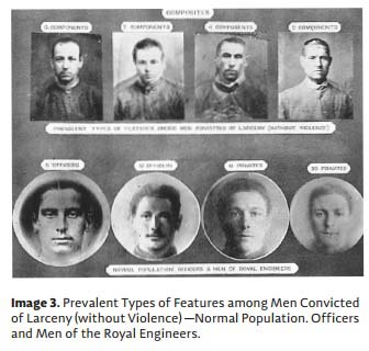 A darker center surrounded by a lighter halo: the former corresponds to features that are recurrent in the family; the latter to less frequent or unique traits. A set of family resemblances is displayed in front of us, in a very unusual form. The experiment seems neutral, even innocent; it was not. It was inspired by eugenics, a project aimed at improving the genetic quality of human (in fact, British) population. Galton used photographs to identify types of specific social groups, suggesting that the reproductive capacity of marginal, potentially dangerous minorities, like Jews or criminals, should be controlled: