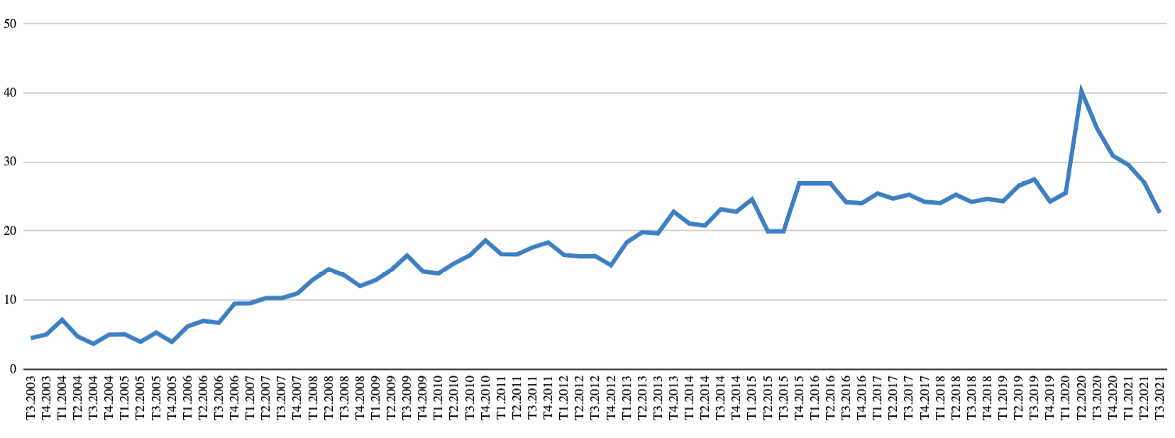 Fuente: EPH, a partir de los datos del cuarto trimestre de cada año, desde 2003 hasta 2022.