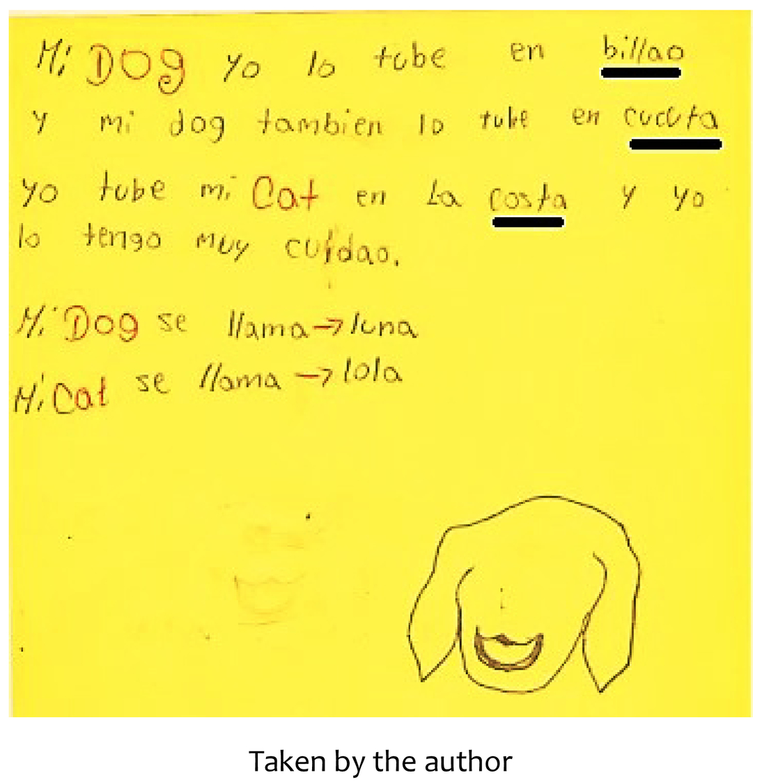 Students in language classes may develop fragmented identities, inasmuch as languages are tied to cultural experiences (Bennett, 2013). Kramsch (2013) defines culture as either major symbols or everyday cultural practices. Victim students do not only develop fragmented identities for this particularity, but also as a result of their lived experiences in conflict and when facing dominant cultures. On the one hand, Embera students usually drew on their native language to talk to their partners and the teacher in the dominant culture. Thus, children enacted not only the dominant community language from where they currently are, but colonial languages and discourses around English within linguistic imperialism (Philipson, 2000).