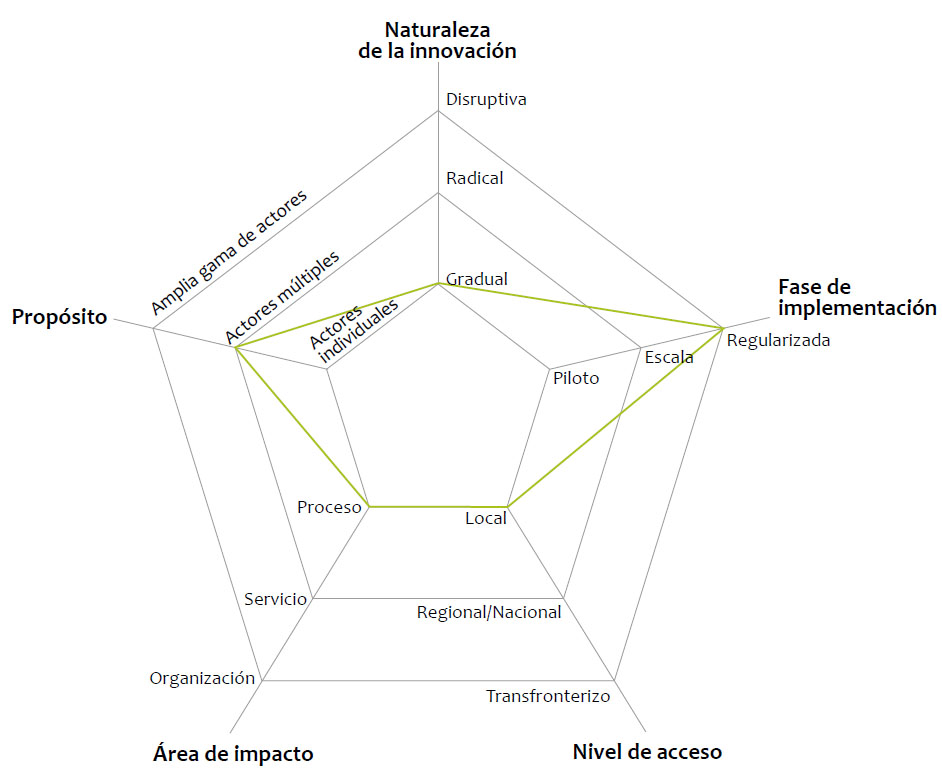 La segunda categoría se refiere al nivel de implementación de la innovación, que, en el caso de los cursos E, se encuentra en una fase regularizada. Esto, debido a que es una innovación actualmente implementada en todos los programas de pregrado de la Universidad y que está consignada en la Guía para el Uniandino de Primer Semestre (2019).